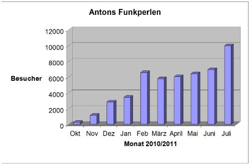 Heute schaute der 50’000. Besucher auf diesem Blog vorbei. Zugleich wurde im August die 10’000er Marke überschritten. Doch wieso besucht jemand Antons Funkperlen? Darauf kann nur die Statistik Auskunft geben. Es heisst zwar: “Vertraue nur einer Statistik, die du selbst gefälscht hast”, aber ich habe nun einmal nichts anderes, als die Zahlen meines Bloghosters WordPress. Dabei wäre ich gerade bei dem, was nicht in der Statistik steht: WordPress hat bisher schon zweimal mein Blog gesperrt. Das geschieht in der Regel aufgrund von Reklamationen von Lesern. Es sind offenbar nicht alle zufrieden mit dem was hier geschrieben wird :-)